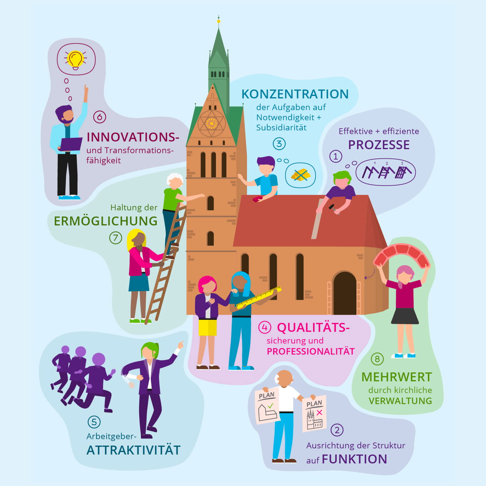 Darüber hinaus soll die Arbeit in der landeskirchlichen Verwaltung attraktiv für Mitarbeitende und eng mit der kirchlichen Arbeit vor Ort verbunden sein.